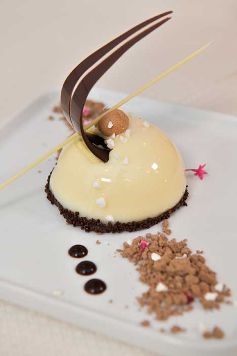 For dessert, the guests were served a plant-based version of a traditional Opera cake.