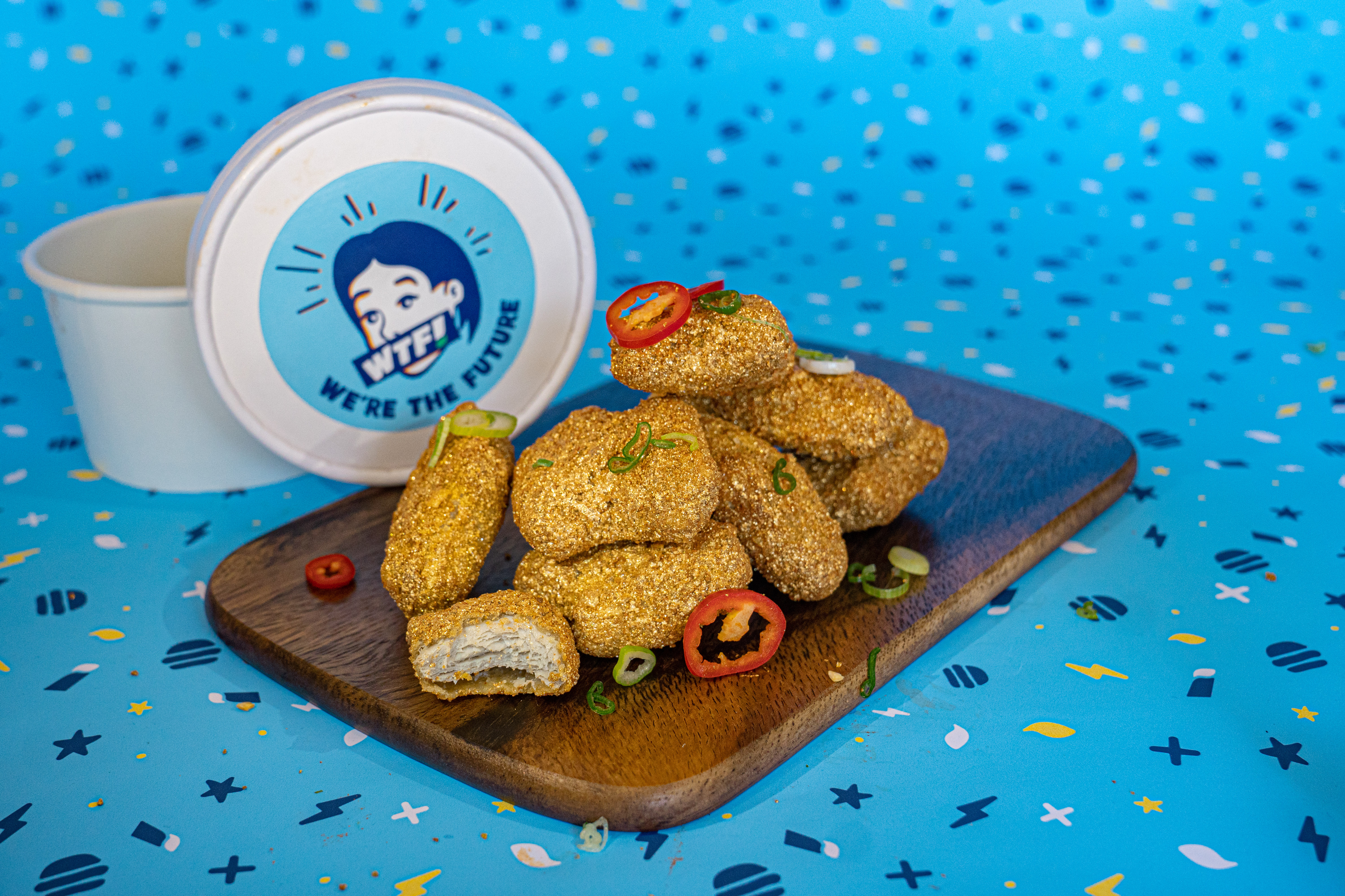 "Our mission is to always leave people thinking "WTF!" - whether that be through our menu, the nutritional value of our burgers, or our choice of ingredients - unprocessed, high in protein and good for the gut. Simply put, we are here to blow your mind, and what can be more mind-blowing than opening your delivery to find edible, glowing Golden Nuggets shining and shimmering in your face?"