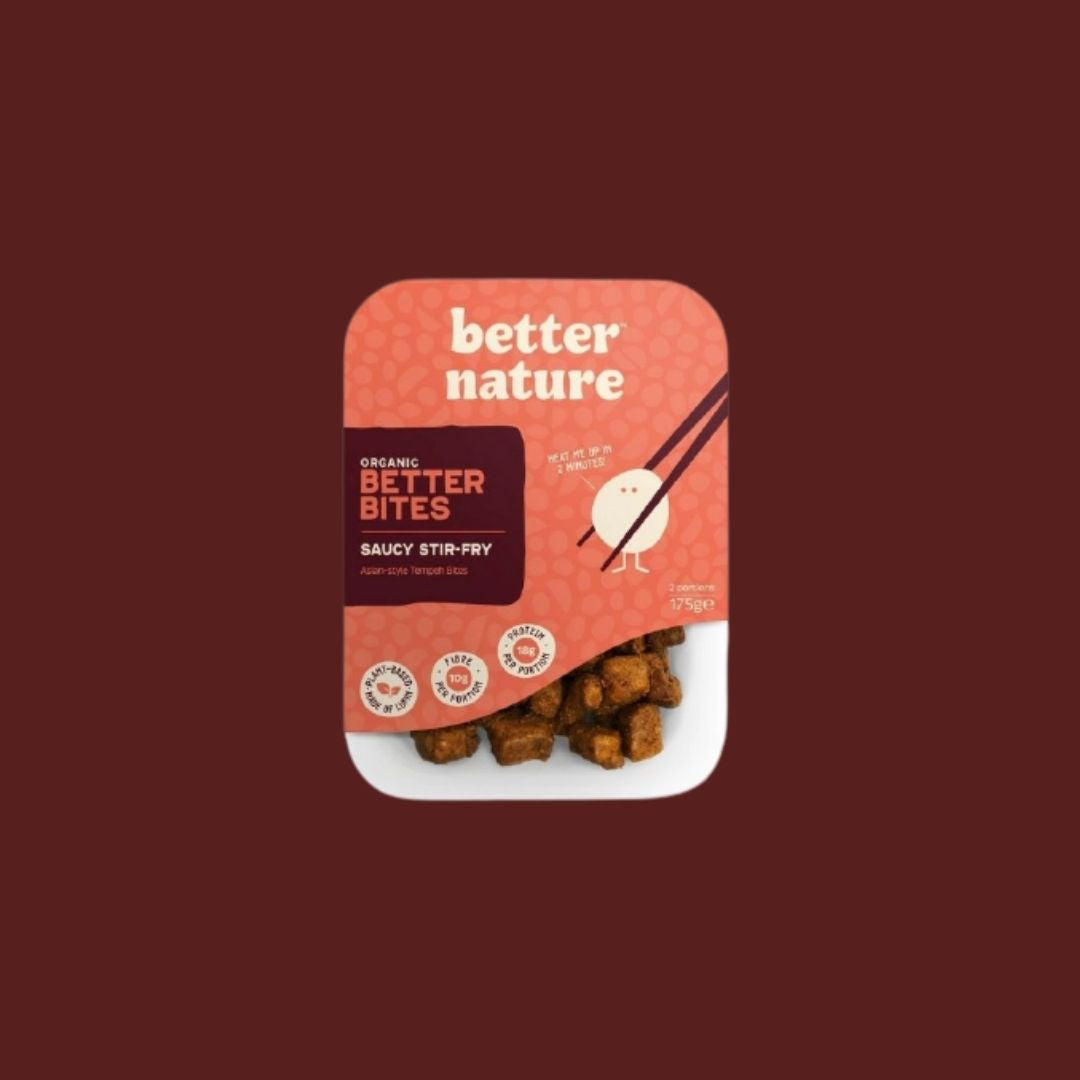 Tempeh originated in Indonesia and is made from fermented soybeans. It's a meat replacement that's become popular in recent years due to it being a good source of protein and prebiotics. Like tofu, it's a blank canvas that you can adapt to your taste; however, unlike tofu, tempeh has a slight, nutty flavour. Better Nature's Organic Better Bites are packed with Asian flavours like soy and ginger, making them the perfect addition to a stir fry.