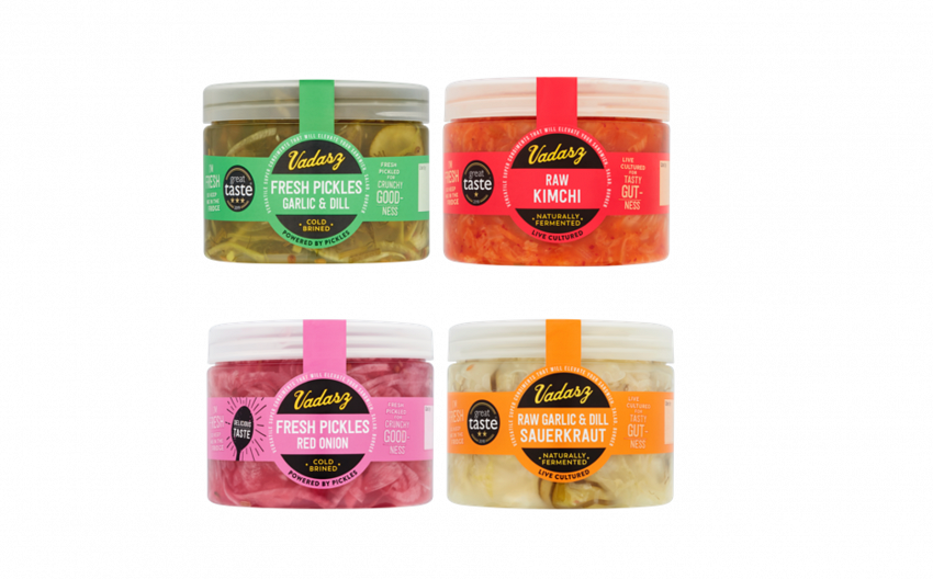 Vadasz pickles and ferments range includes Raw Kimchi, Super Green Kimchi, Raw Garlic and Dill Sauerkraut, Fresh Pickles and Red Onion, and Fresh Pickles with Garlic and Dill.