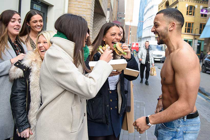 Vegan food producer Meatless Farms organised a stunt to hijack this campaign by giving away free plant-based burgers on the streets of London.