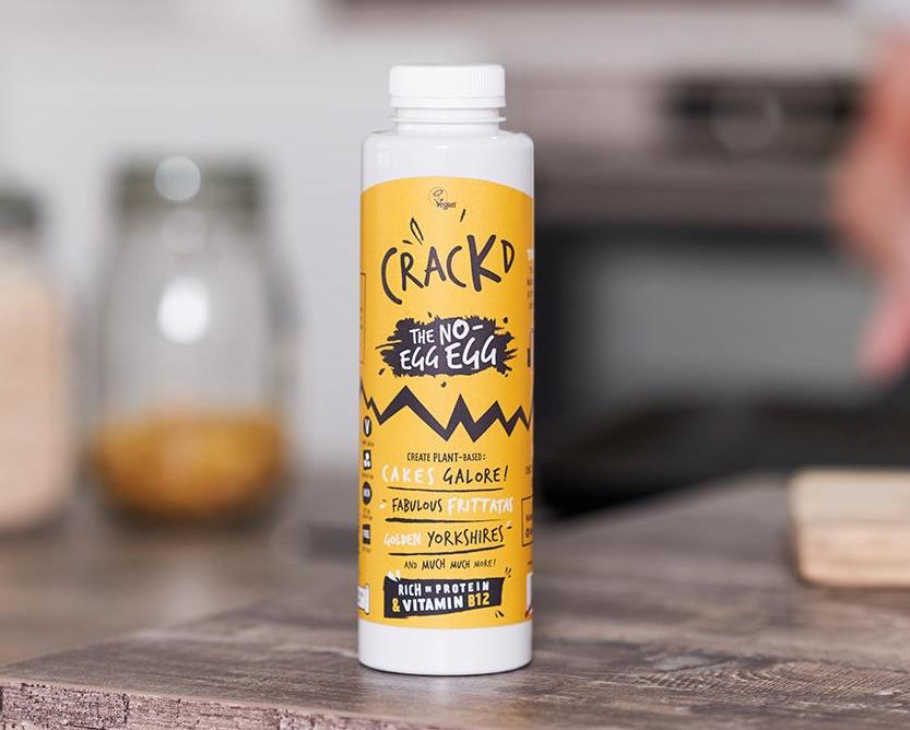 Vegan eggs can be from multiple sources. One of the most recent and exciting egg substitutes on the market is CRACKD, a liquid egg product using pea protein (an extract of split peas). Another popular product is Follow Your Heart, a vegan egg product in powder form using organic soymilk powder.