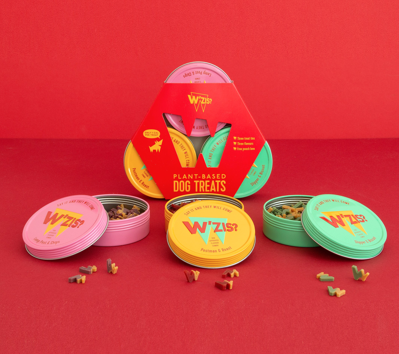 W'ZIS secret weapon: a vegan dog treat that looks like no other - pocket or purse-friendly with smells that dogs just love, placed inside a funky tin that rattles when you shake. No nasties here - besides,why put meat into treats when plants can do the job just as well?