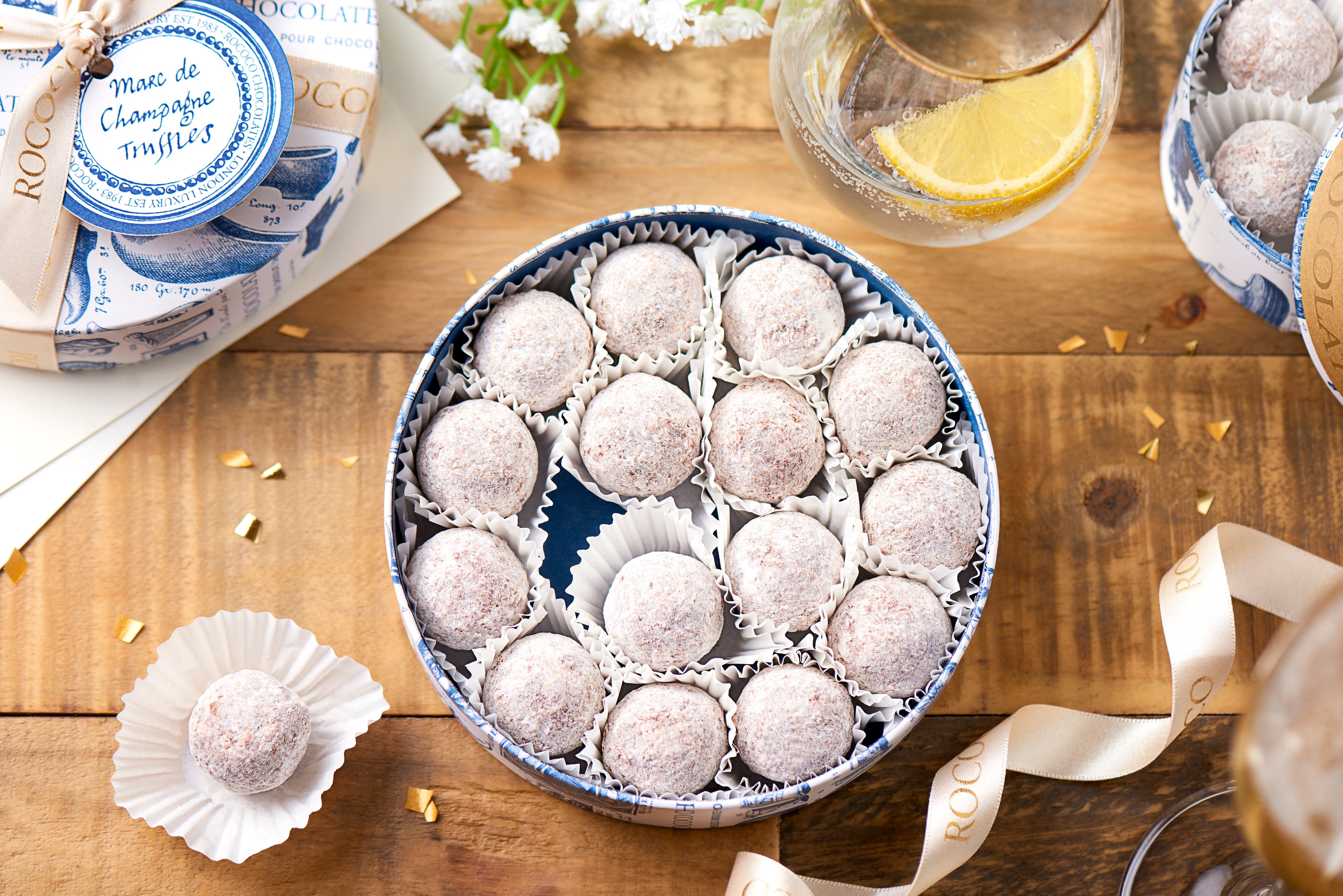 These moreish truffles are housed in signature Rococo print box. Contains 16 truffles.