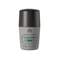 Urtekram men's roll on deodorant 50ml. Organic. Cosmos standard. Vegan. not tested on animals. URTEKRAM Men Cream Deodorant with a fresh masculine scent of juniper contains a powerful combination of organic baobab, liquorice and aloe vera. Aloe vera calms and revitalize the skin. Baobab, liquorice and zinc ricinoleate protect the skin and deodorize. This deodorant helps with the challenges of an a...
