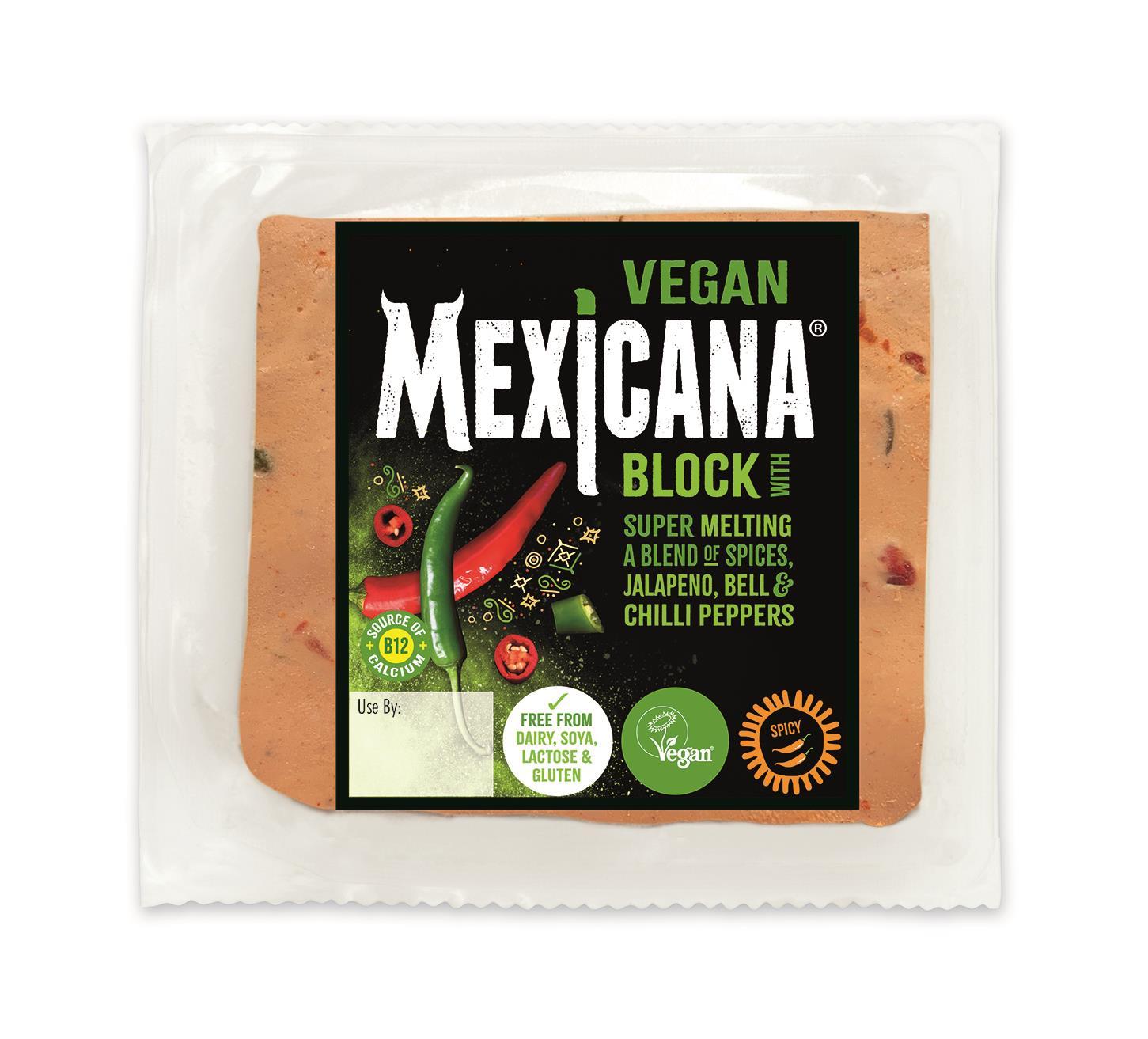 Vegan Mexican spicy chilli cheese alternative. A soya, gluten and dairy free alternative to the nations favourite chilli cheddar, melts well for on pizzas or jacket potatoes and also great eaten on its own.