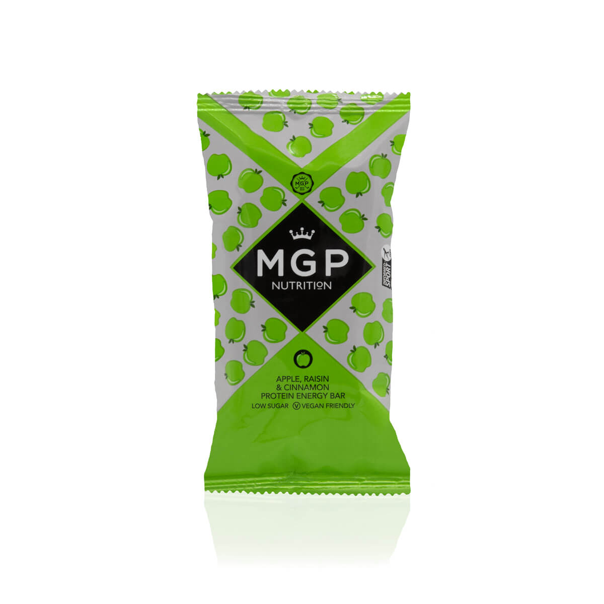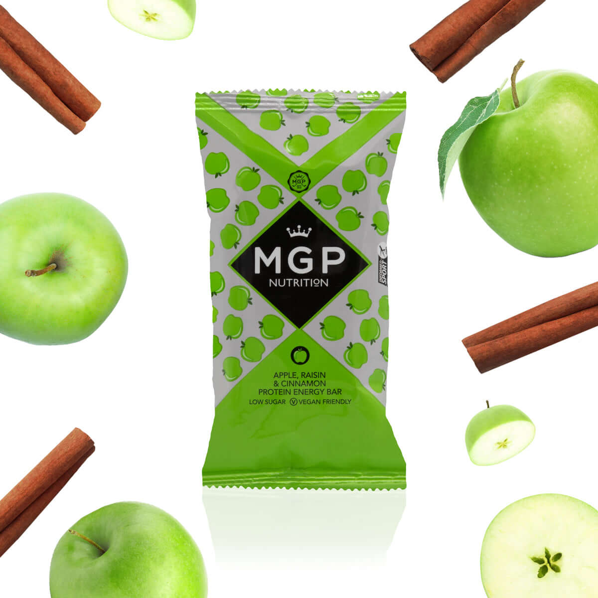 THE MGP APPLE, RAISIN & CINNAMON PROTEIN ENERGY BAR is a delicious and nutritious on-the-go snack. Baked with juicy raisins and warm cinnamon, this high protein, low sugar apple flavour bar is your new favourite snack to fuel your day.