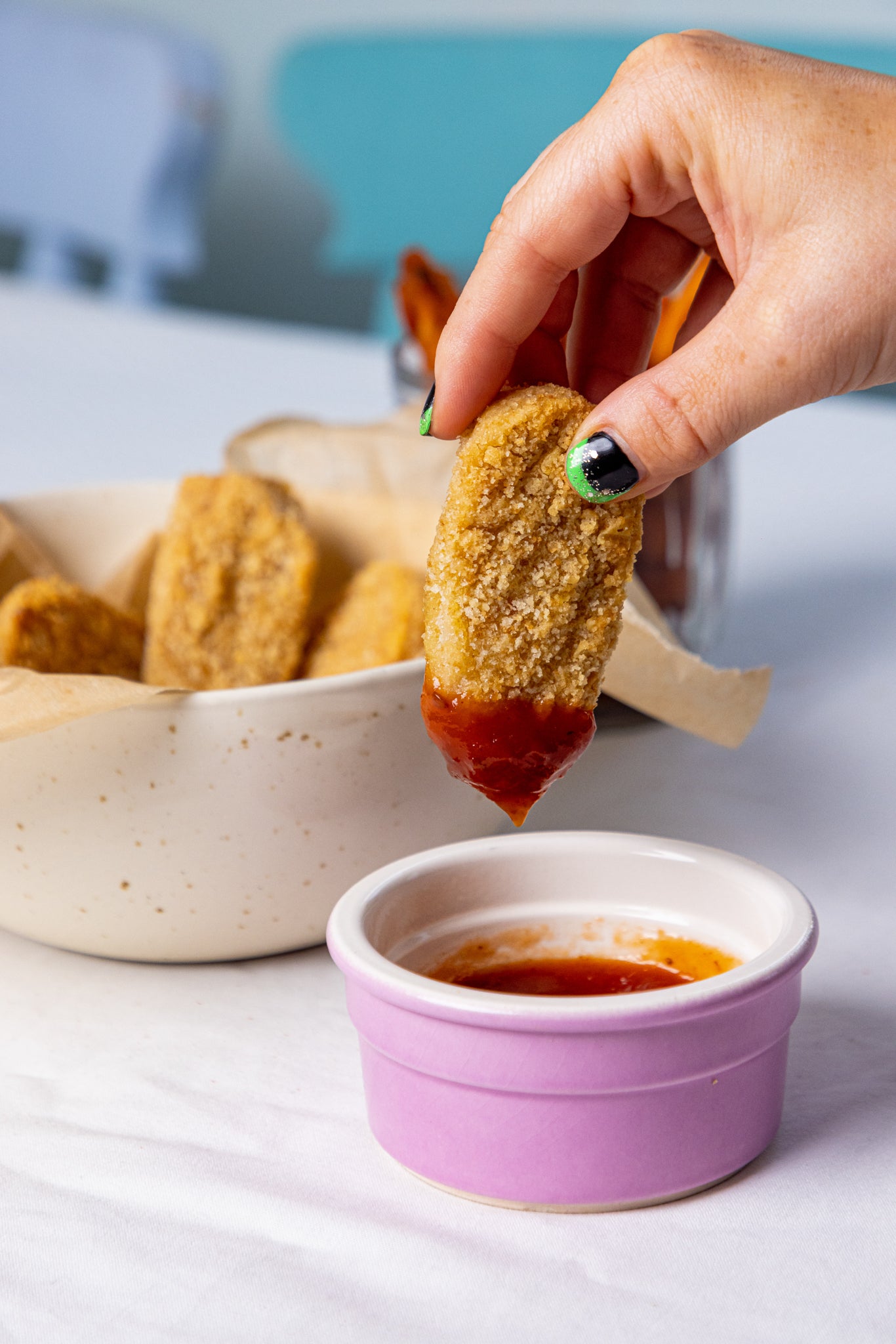 Flavoured rehydrated rice flake 34,6% (water, rice flour, natural flavours, salt, onion powder, sugar, garlic powder, ground black pepper, leek powder), water, breadcrumb 11% (rice flour, potato starch, tapioca starch, sunflower oil, dextrose, sugar, stabiliser : hydoxypropylmethylcellulose, salt, maize starch, yeast, psyllium fibre), maize starch, sunflower oil, pea protein, maize flour, gelling agent : methylcellulose, potato starch, rice, rice flour, natural flavours, salt, bamboo fibre, onion powder, garlic powder, sugar, white pepper, ground black pepper, leek powder, paprika, thickener : xanthan gum.