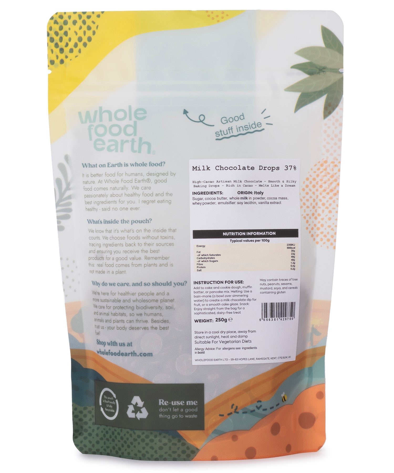 Made from quality cocoa butter, whole milk powder, and cocoa mass, these versatile drops are perfect for baking, melting, or enjoying straight from the pouch.