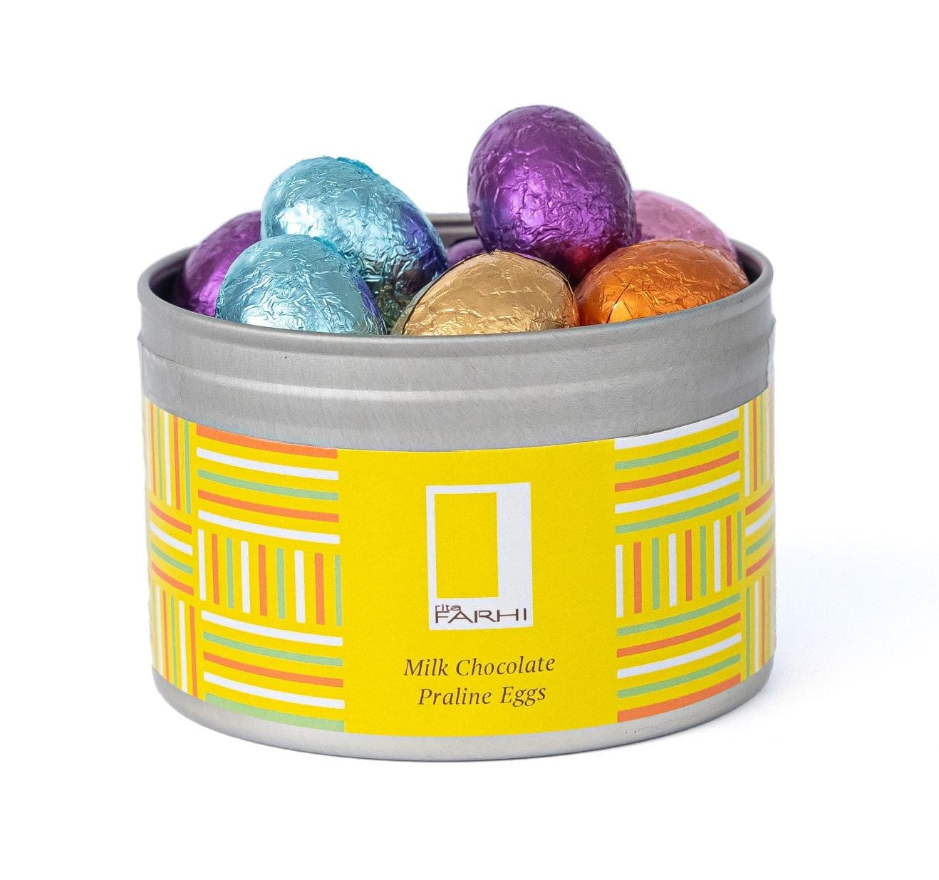 Each one of our milk chocolate pralines are wrapped in luxurious foiling and filled with creamy, crispy, hazelnut praline. Presented in a stylish gift tin, this is a truly scrumptious gift for hazelnut lovers. The attractive assorted colours foiling makes this an extra special gift for your friends and loved one's this Easter.