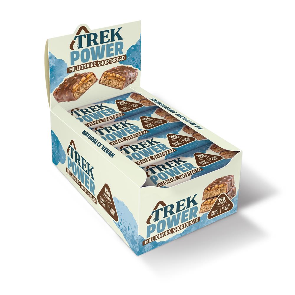 Millionaire shortbread inspired high protein bar, covered in a natural chocolate...