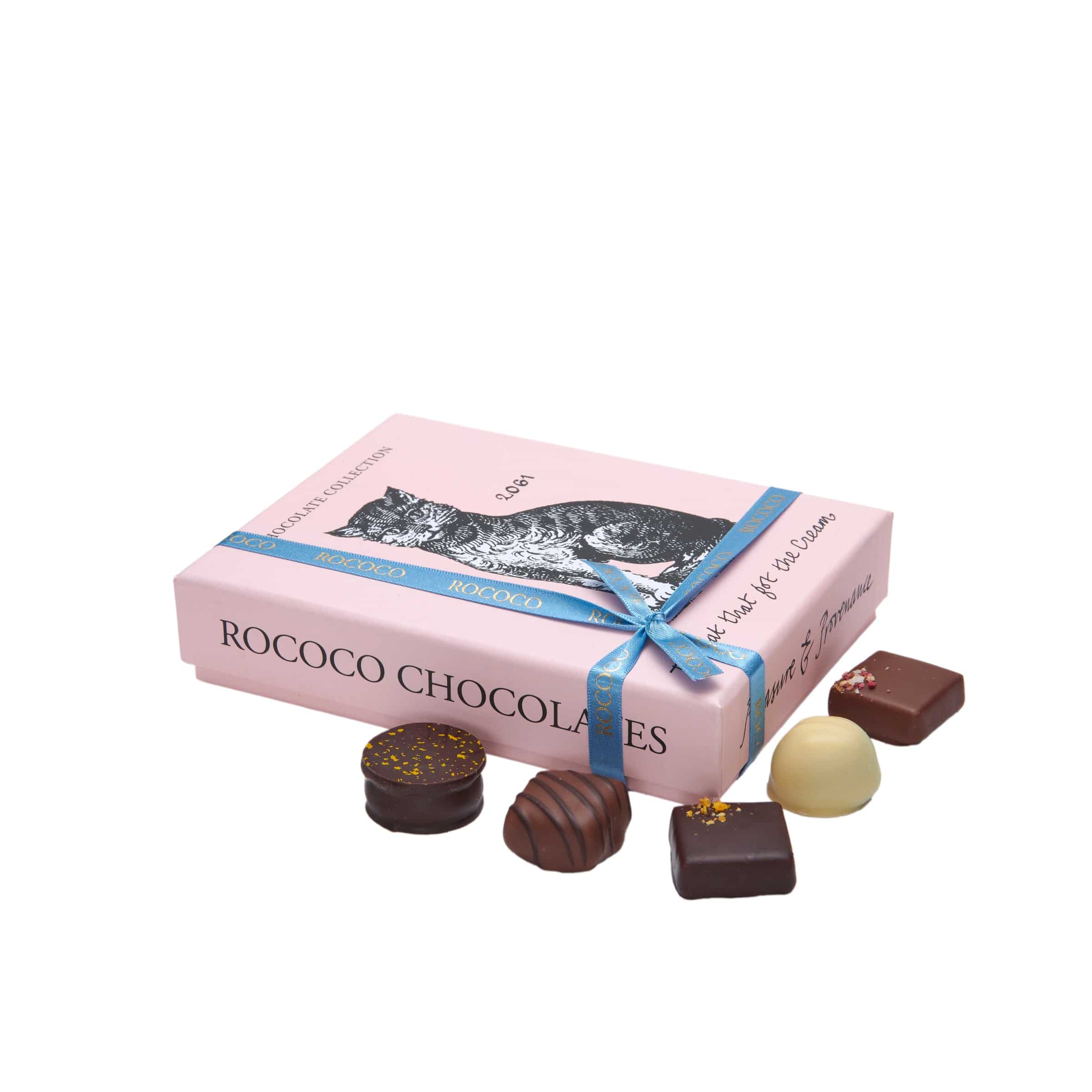 The perfect gift for a cat lover, The Cat That Got The Cream Chocolate Truffles Box contains 6 delicate ganaches and pralines.