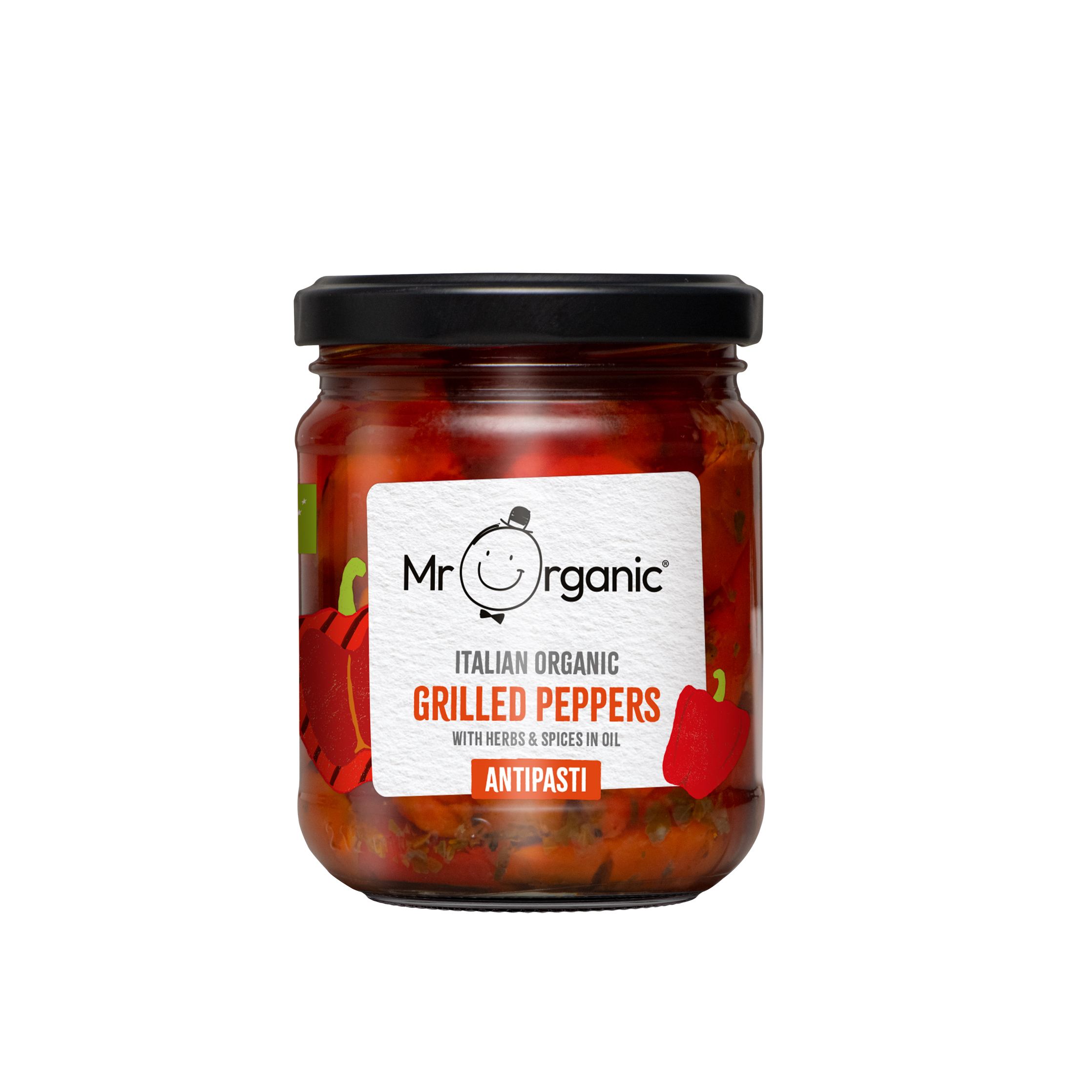 Italian peppers* (56.1%), sunflower oil* (33.6%), extra virgin olive oil* (8.5%), salt, garlic*, wine vinegar*, parsley* (0.1%), basil* (0.1%), chilli pepper* (0.05%). *From organic agriculture. Allergy Information For allergens see ingredients in bold. ( organic ),