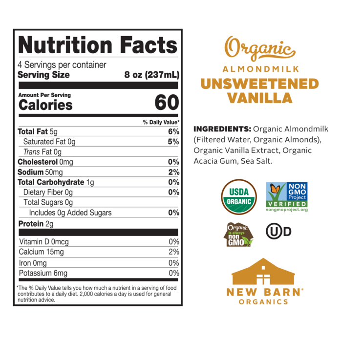 Unsweetened, but with the perfect touch of naturally sweet and decadent vanilla. Our Almondmilk has everything you need and nothing you don’t. We start with filtered water, lots of organic almonds and a touch of sea salt. Blended with acacia gum - sap from the acacia tree - as nature’s solution to ensure it comes back together when you shake it. Just like homemade, from our kitchen to yours. Our...