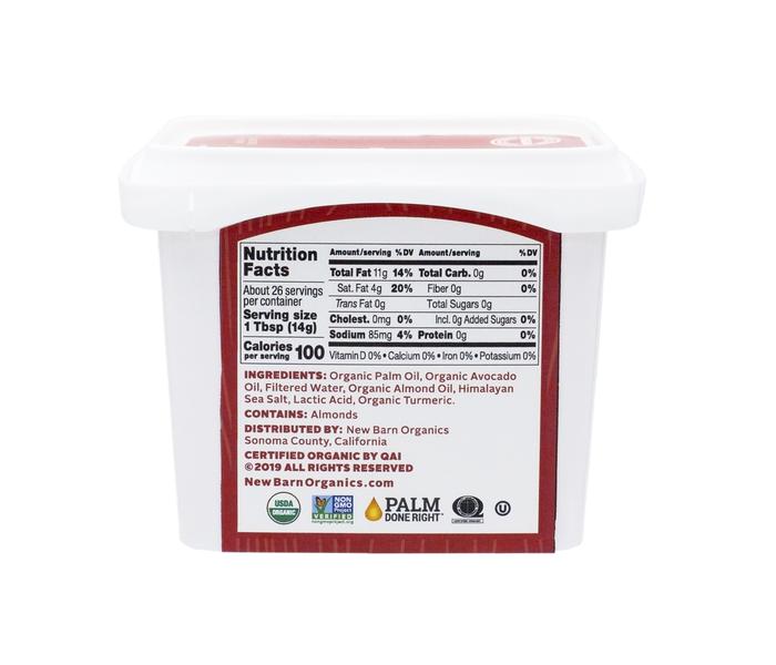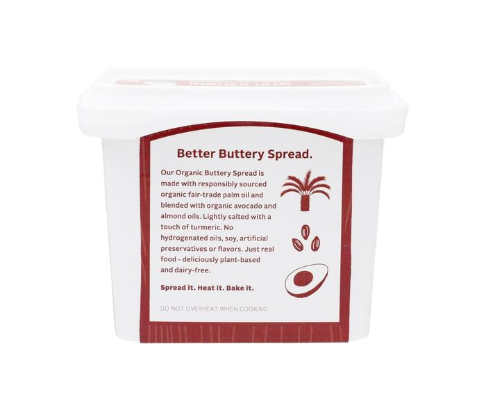 Deliciously creamy and lightly salted. Spread it, melt it, or bake it. Better butter without compromise. Made with responsibly sourced organic fair-trade palm oil and blended with organic avocado and almond oils. Lightly salted with a touch of turmeric. No hydrogenated oils, soy, artificial flavors or preservatives. Just real-food - deliciously plant-based and dairy free. Spread it. Heat it. Bake...