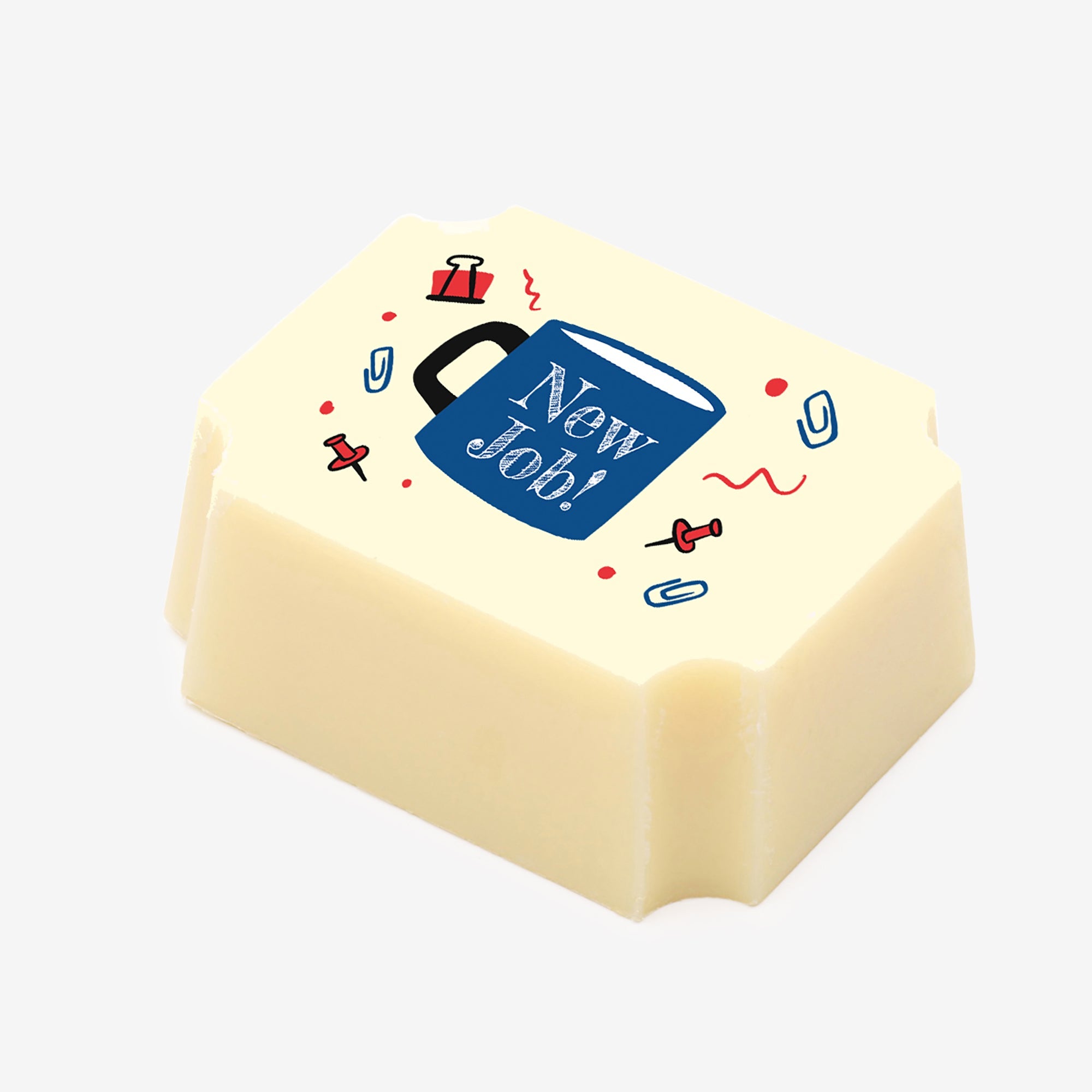 A luxury selection box of 25 filled artisan chocolates, featuring two special 'New Job' themed chocolates. Made with natural ingredients and hand-decorated with cocoa butter.