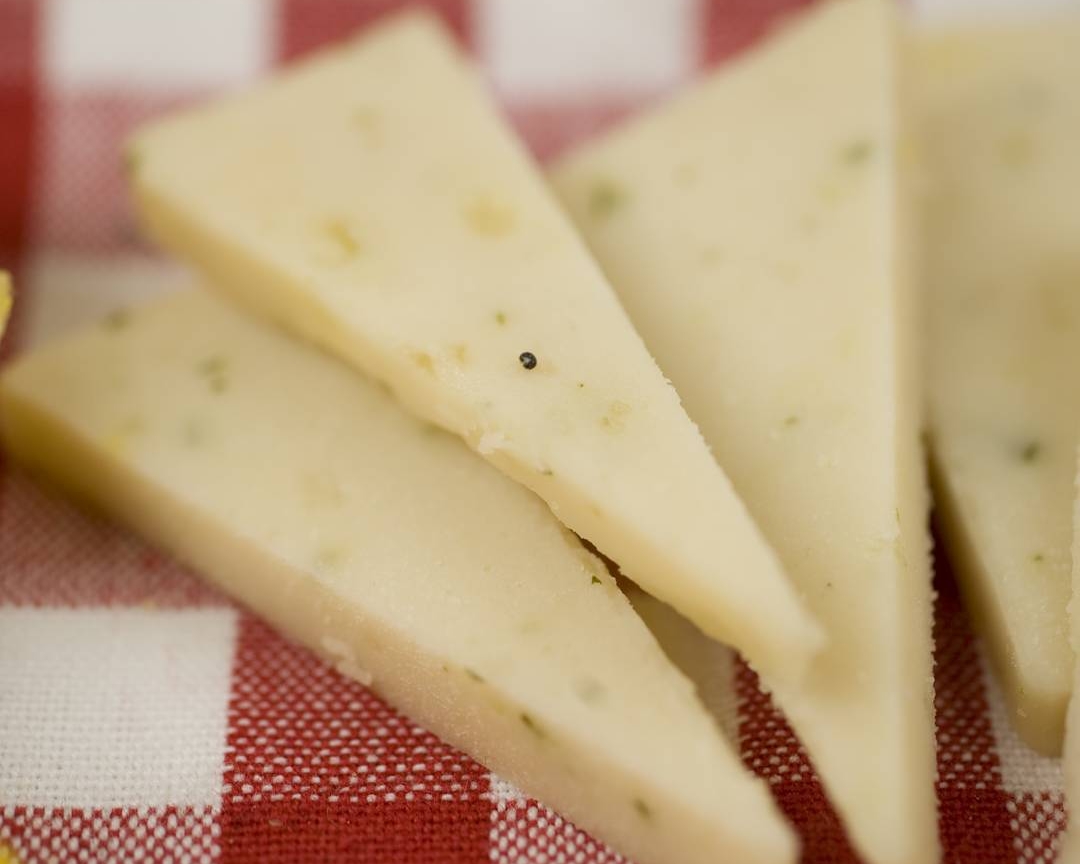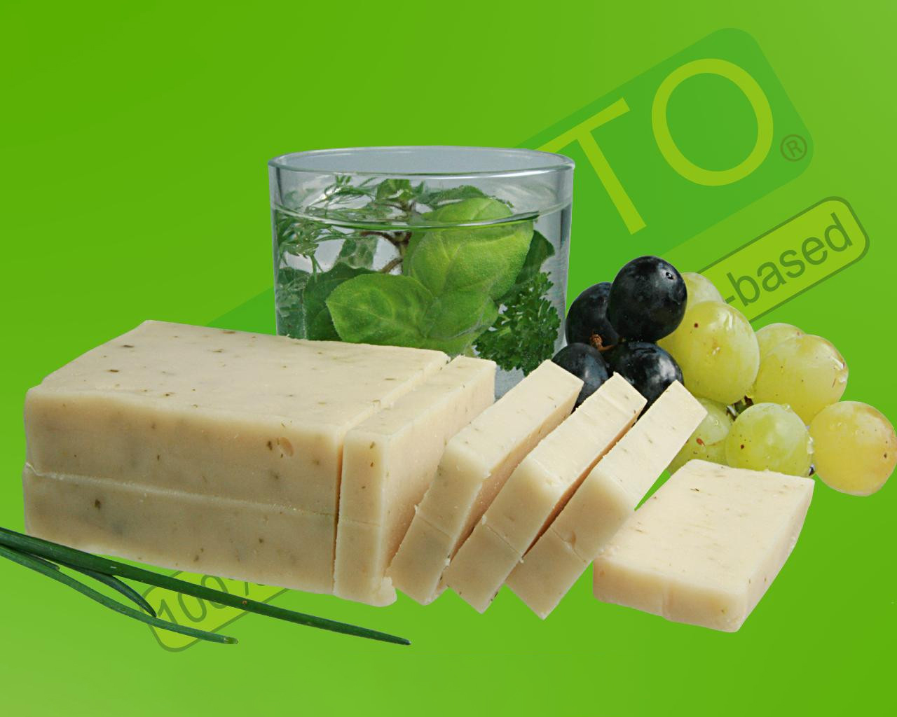 Vegan, non-dairy alternative to cheese with a selected mild herb taste.
