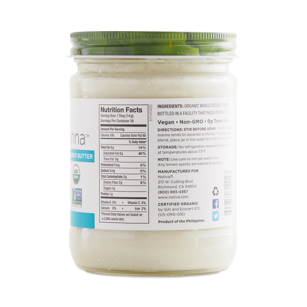 Each jar is whipped up from pure, dried coconut flesh, producing a super rich and creamy spread that tastes great on freshly baked bread or used as a healthy substitute in any recipe that calls for butter or cream. It’s also loaded with nourishing fats, fiber, and protein, making it a superfood that tastes just as good as it is good for you. Ingredients Organic whole coconut puree.