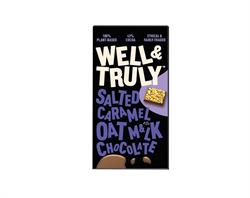 WE KNOW WHAT YOU ARE THINKING - HOW CAN THEY TAKE THE BEST OAT MILK CHOCOLATE BAR OUT THERE TO THE NEXT LEVEL? TOP IT WITH SALTED CARAMEL. IF A DELICIOUS, RICH AND CREAMY NON-DAIRY CHOCOLATE BAR WASN'T ENOUGH, FLIP ME OVER AND CHECK OUT MY CHUNKS OF SALTED CARAMEL. YOU'RE WELCOME. Vegan. Gluten Free. Single origin cocoa from B-Corp certified grower.