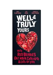 A love letter of Oat M&lk Chocolate & Red Berries. Peek through the heart shaped window and see the love in every berry-covered bite. This Cocoa doesn't lie! For a Valentine that's as kind to the planet as it is irresistible, this one's Well&Truly Yours. Vegan. Gluten Free. Palm Oil Free. Single origin cocoa from B-Corp certified grower.