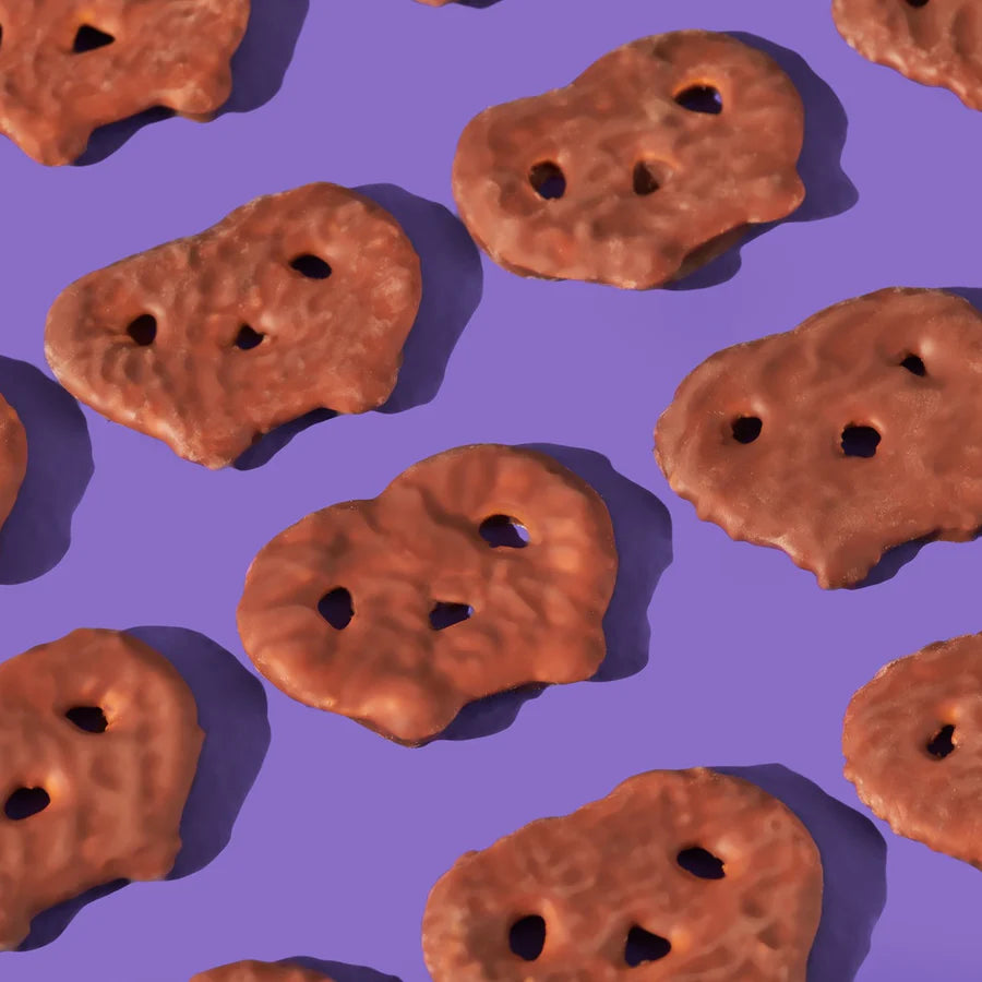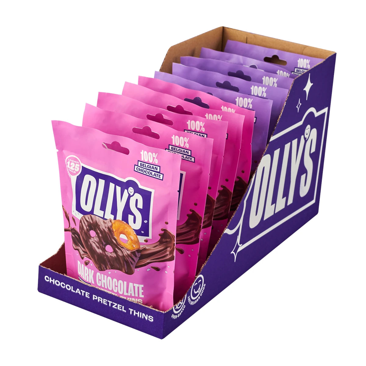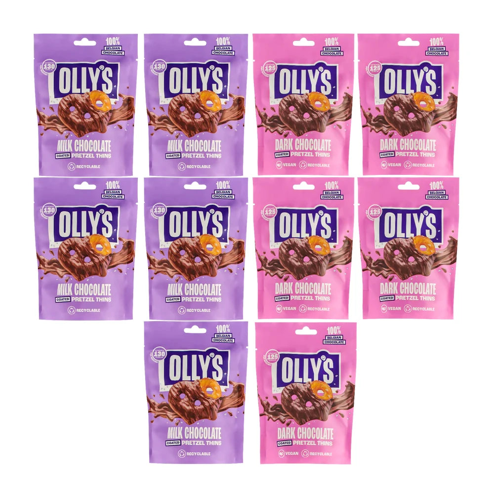 The oll-timate sweet & salty taste extravaganza! We lightly salt & oven-bake our signature pretzel thins before enrobing them in delicious 100% Belgian milk & dark chocolate coats.