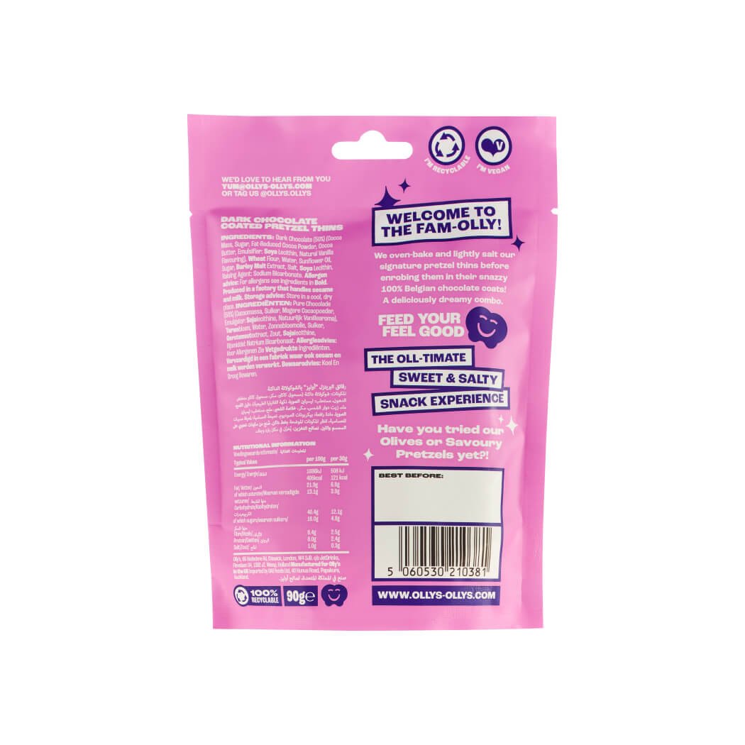 Experience the irresistible crunch of Olly’s dark chocolate pretzel thins – the very first vegan dark chocolate pretzel thins crafted with an elegant coat of 100% Belgian dark chocolate. At just 125 calories per serving, these indulgent treats offer a sophisticated balance between sweet and savoury flavours, making them a truly unique snack for any occasion. Perfect for those who appreciate quality and innovation in every bite, Olly’s pretzel thins promise a delightful escape from the ordinary.