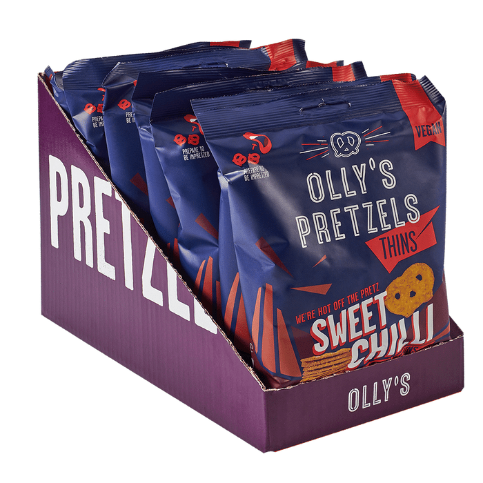 The pretzel's answer to the crisp! And with up to 80% less fat, 45% fewer calories and 1000% more impretziveness than potato crisps... It's time to be IMPRETZED. These Sweet Chilli Pretzel Thins are oven-baked, vegan and only 95 calories per pack. They are pretz perfect as a healthy snack, delicious with all forms of dips and are very flexible when used to spruce up your baking and recipes.