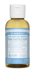 Dr. Bronner's Organic Baby Unscented Pure-Castile Liquid Soap 60ml. With no added fragrance and double the olive oil, our Baby Unscented Pure-Castile Liquid Soap is good for sensitive skin & babies too (though not tear-free!). Our Pure-Castile liquid soap is concentrated, biodegradable, versatile and effective. Good for just about any cleaning task. Face, body, hair & food, dishes, laundry, moppin...
