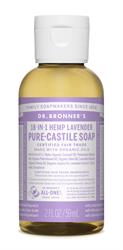 Organic LAVENDER Castile Liquid Soap 60ml. Scented with pure lavender and lavandin oils to calm the mind and soothe the body! Dr. Bronner's Pure-Castile Lavender Liquid Soap is concentrated, biodegradable, versatile and effective. Good for just about any cleaning task. Face, body, hair & food, dishes, laundry, mopping, pets & clean your house and body. Natural, Organic, Biodegradable,