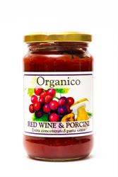 Organic Red Wine & Porcini Sauce 360g. Taste the woods, valley and mountains of Tuscany with this rich red wine and porcini sauce.