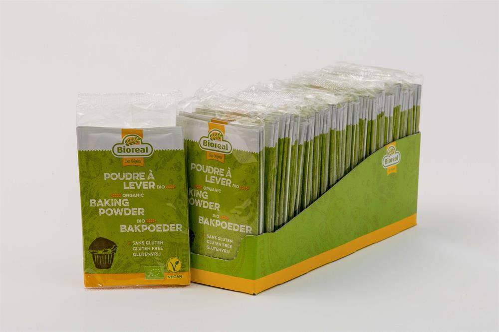 BIOREAL Organic Baking Powder for the leavening of cakes and pastries. BIOREAL Organic Baking Powder has superior single acting rise without added aluminium or phosphates. Made with extracts of organic grape juice concentrate and organic corn starch. BIOREAL Organic Baking Powder is the quality choice for traditional great taste. To use as conventional baking powder.
