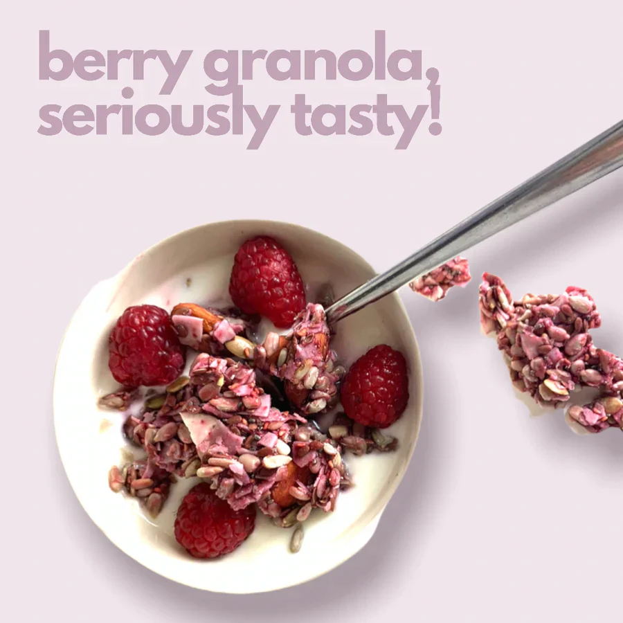 Did you know that bitter sweet raspberries come from the Rose family? We use only the finest organic sweet & juicy raspberries for our Keto Berry Granola