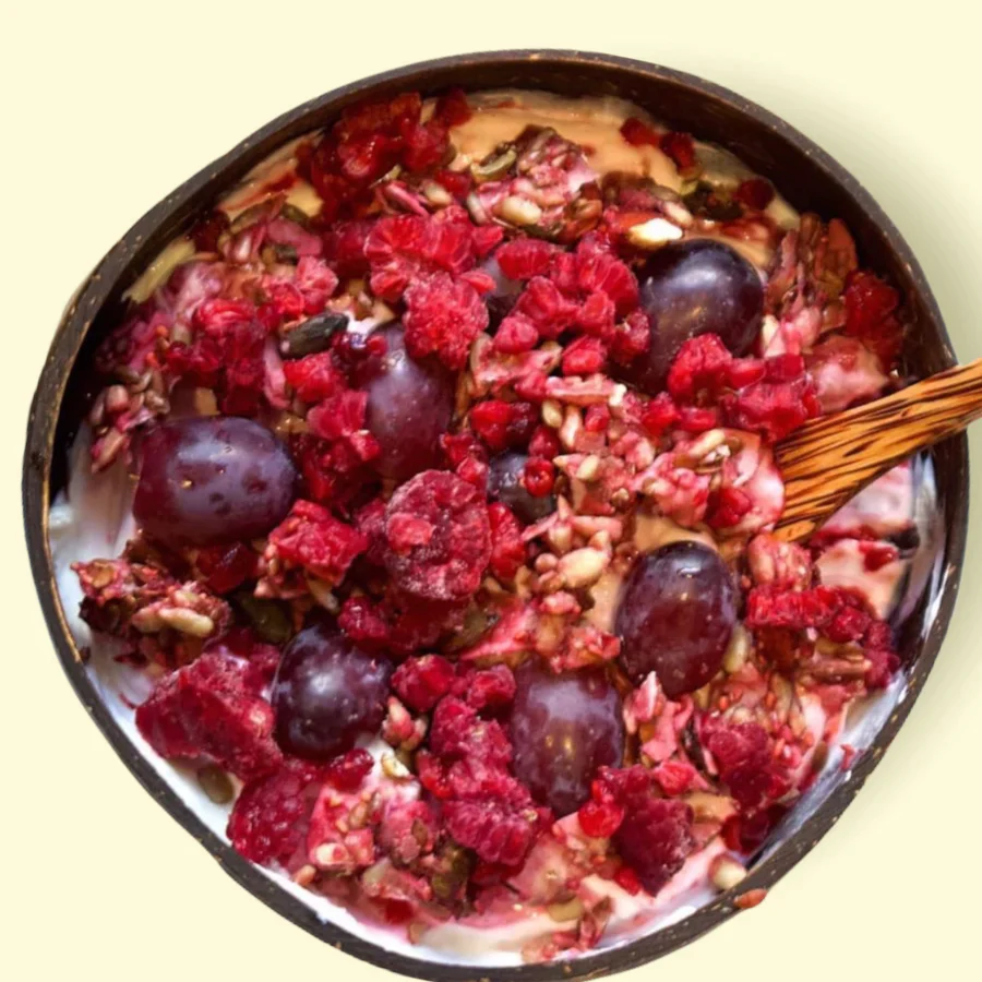 Our heavenly raw & organic coconut chips add a natural silk sweetness to complement our crunchy keto Berry Granola recipe