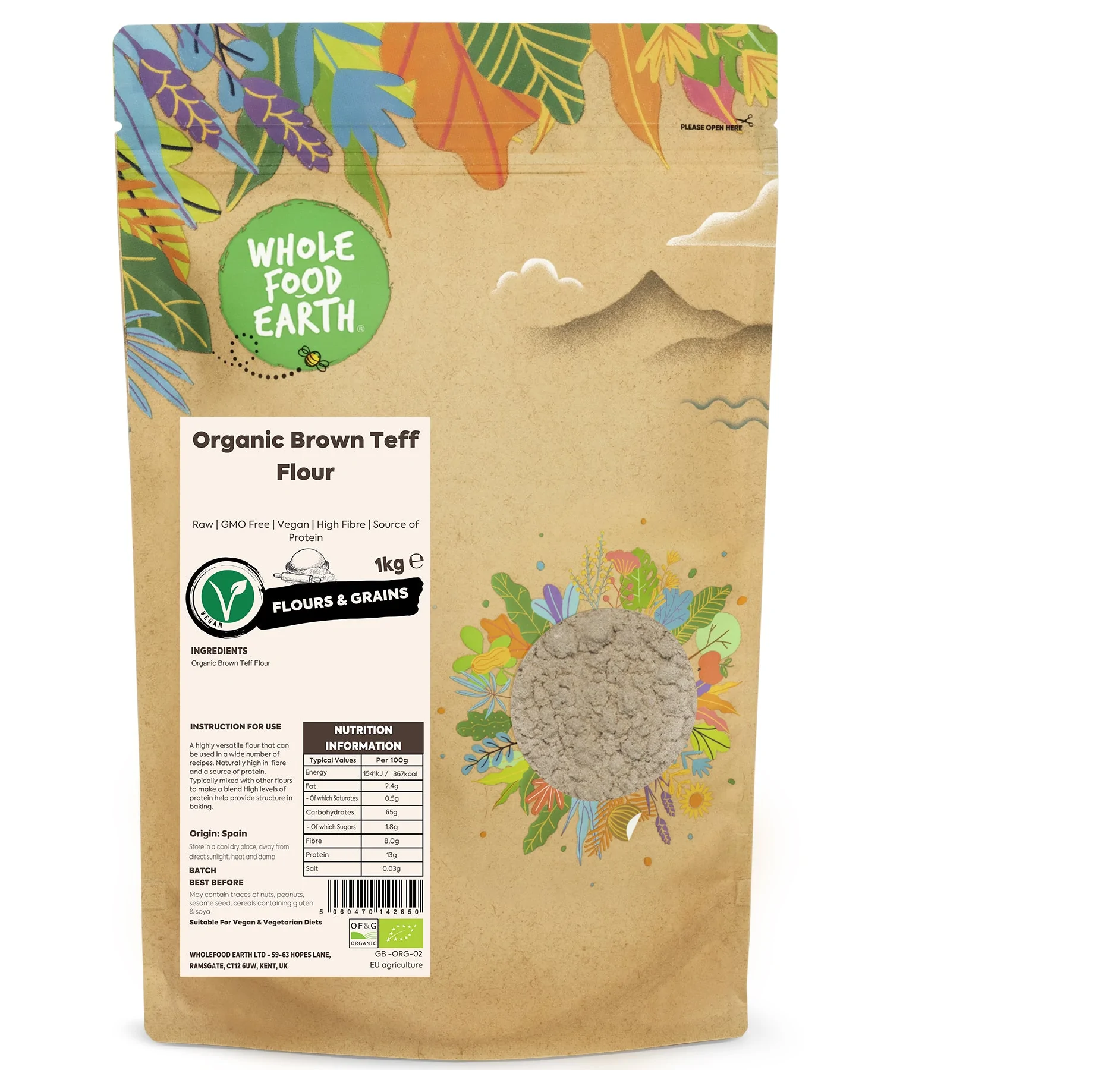 Teff flour derives from teff, a grass native to Ethiopia. It contains natural goodness that the human body absolutely adores, including: dietary fiber, protein and calcium. It has a slight sweet and malty flavour and is ideal for baking.