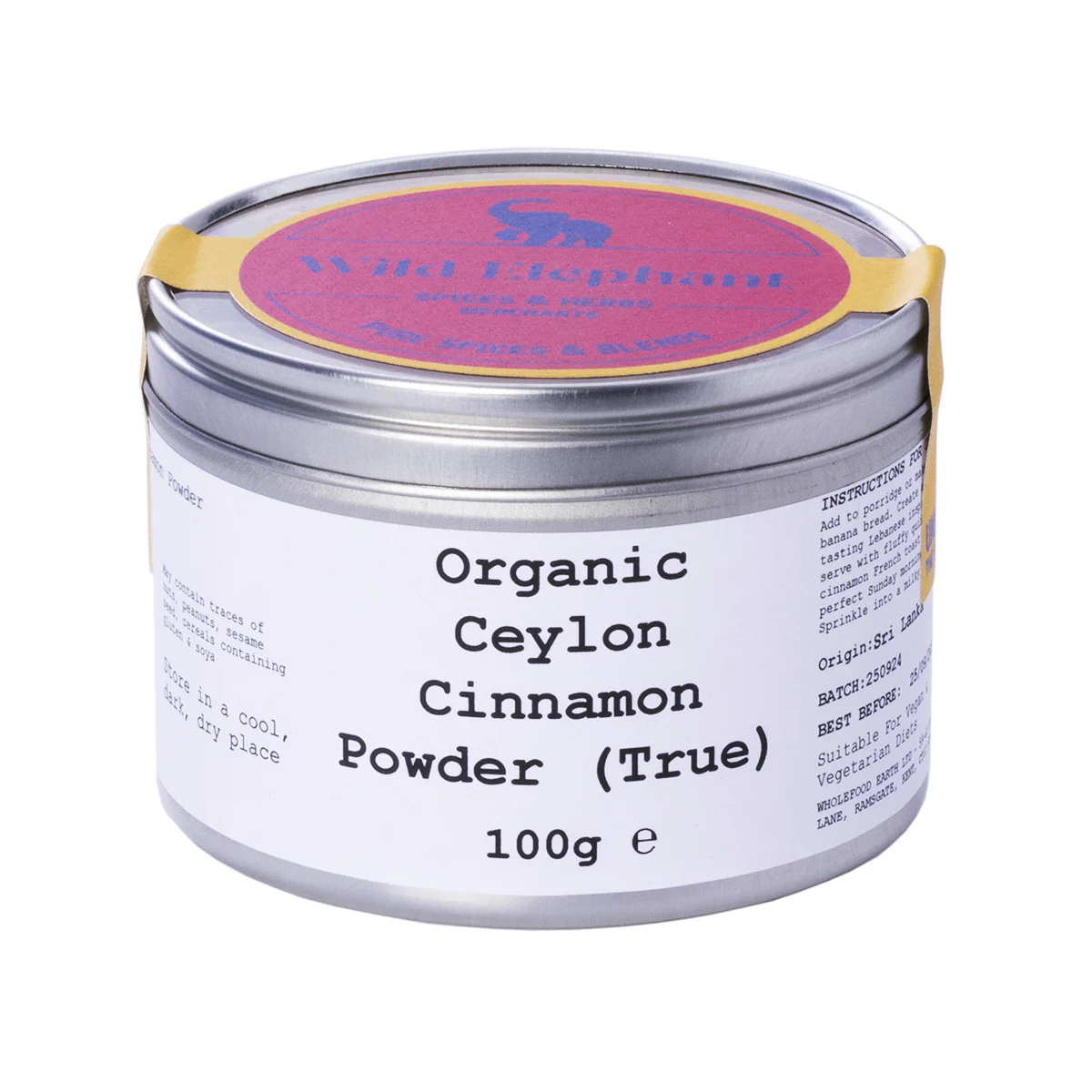 Our Wild Elephant Organic Ceylon Cinnamon is called True because of the fact that this variety is the true original cinnamon, native to Sri Lanka (formerly known as Ceylon).Ceylon cinnamon has a lighter colour, more delicate taste and a more flavourful aroma. It is also more difficult to find and more expensive than the more common Cassia variety.
