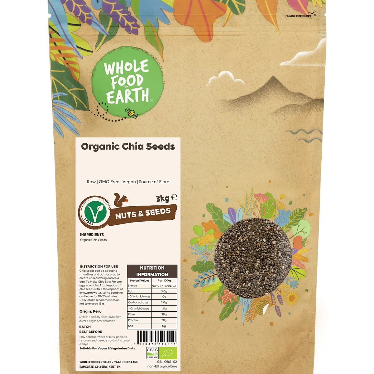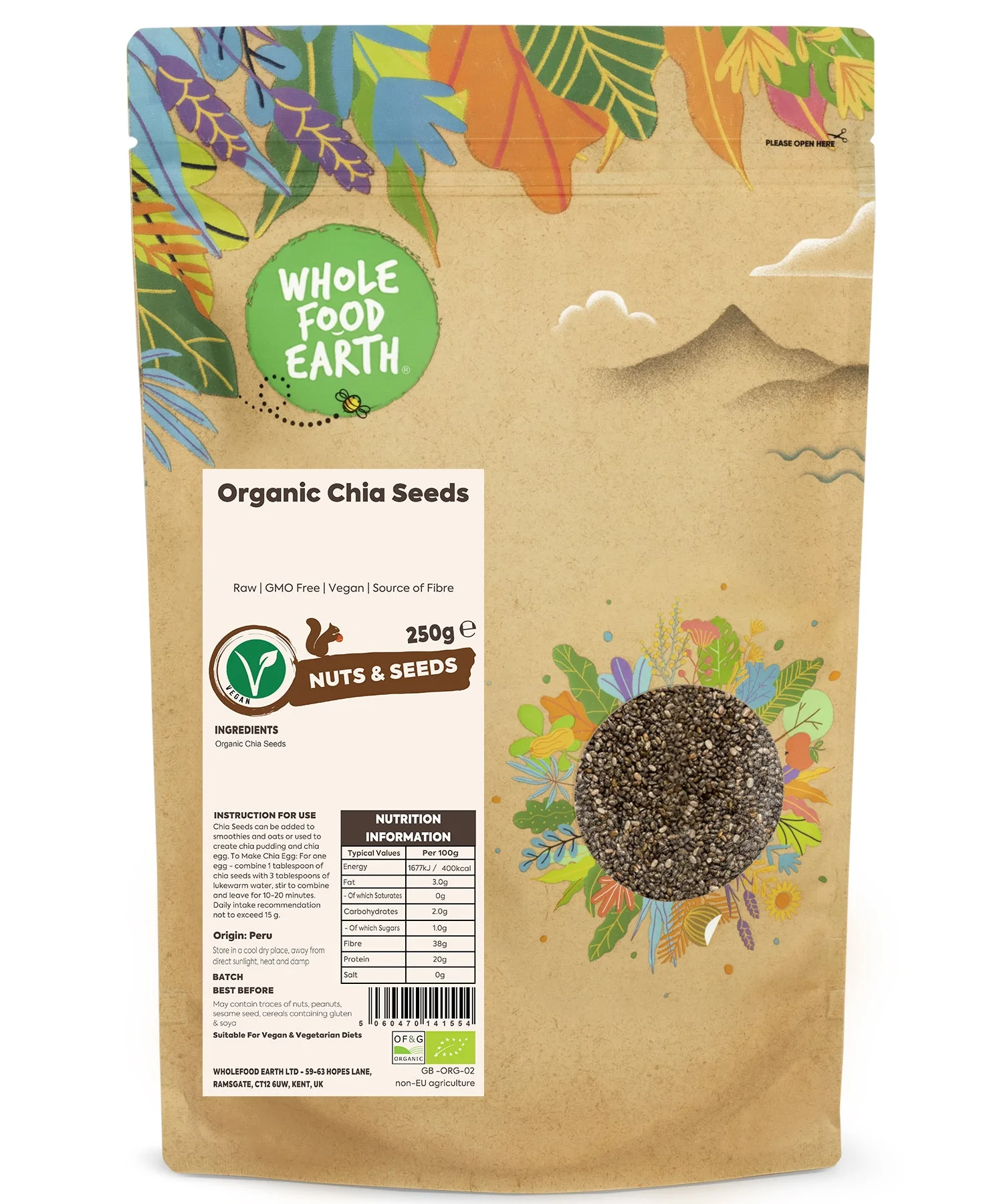 Chia Seeds can be added to smoothies and oats or used to create chia pudding and chia egg. To Make Chia Egg: For one egg - combine 1 tablespoon of chia seeds with 3 tablespoons of lukewarm water, stir to combine and leave for 10-20 minutes. Daily intake recommendation not to exceed 15 g.