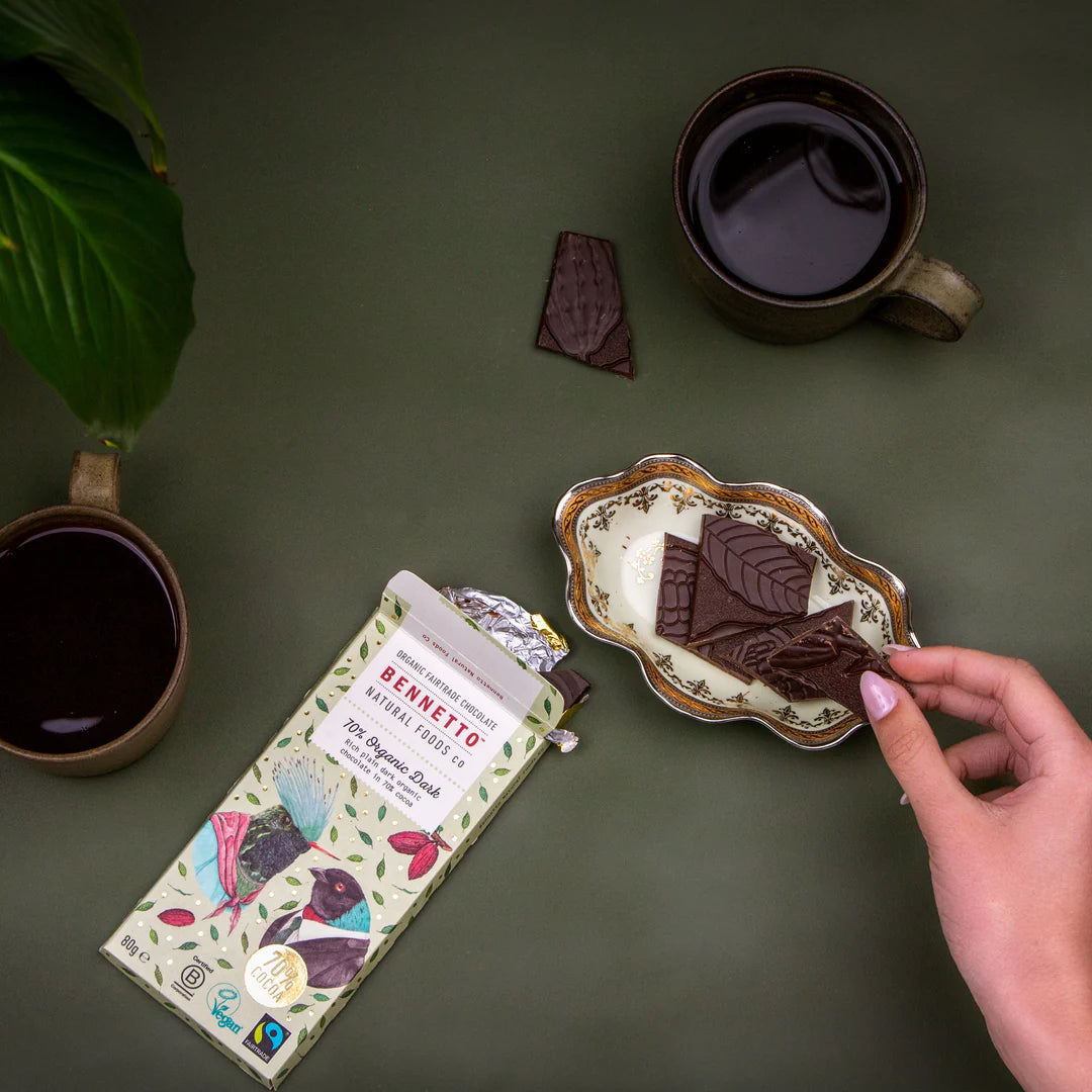 This Bennetto chocolate is a delicious rich plain dark organic chocolate with 70% Cocoa.
