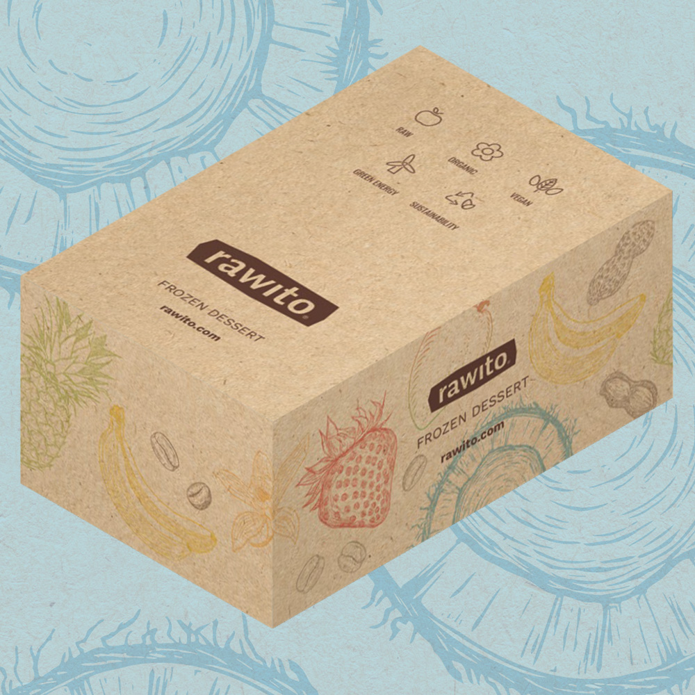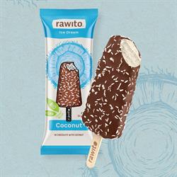 A juicy raw frozen dessert made from the best organic coconuts in dark chocolate. An exotic trip to an unspoiled beach with coconut palms. Pineapple* (43%), water, coconut paste* (14%), coconut nectar* (10 %), chocolate topping (cocoa mass*, coconut* (4%), coconut oil* (3,5%), olive oil*).