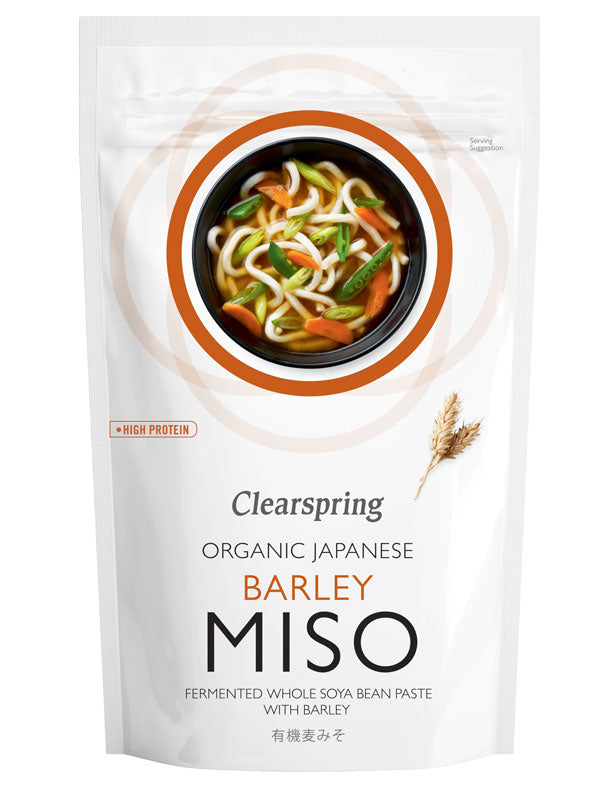 During the 18 years Clearspring's founder Christopher Dawson lived in Japan he became an expert on miso quality, and the Clearspring range is his selection of the finest traditionally made Japanese miso. All traditionally fermented Japanese miso is prepared by cooking the finest organically grown ingredients (whole soya beans and cereal grains) and combining them with a koji culture (grains or soya beans inoculated with Aspergillus oryzae mould spores) sea salt and water. Then naturally aged in cedarwood kegs over many months at ambient temperature the enzymes from the koji, along with naturally occurring yeasts and bacteria, gradually break down the complex grains and beans into readily digestible amino acids, fatty acids and simple sugars. The resulting miso has rich and complex flavours and an abundance of umami, the fifth taste.