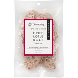 Clearspring Organic Japanese Lotus Root is made following the traditional methods by simply cutting the freshly harvested root and drying it. To reconstitute, soak in lukewarm water for 1-2 hours until soft. Drain and then simmer or saute alone or with other vegetables and season to taste with soya sauce.