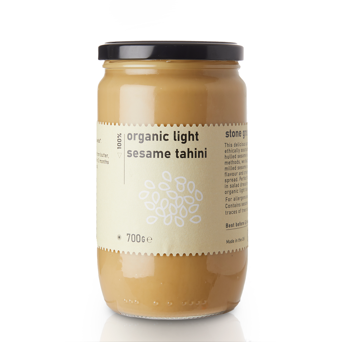 We make this deliciously creamy spread from ethically sourced Bolivian organic hulled sesame seeds. Using traditional methods, sesame seeds are gently stone-ground at low temperatures to protect all their nutritional goodness. Perfect to use as an ingredient in salad dressings and hummus – our raw white sesame tahini is the best it could be.