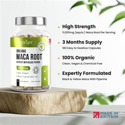 Organic Maca Root 11,000mg with Black Pepper, 180 Vegan Capsules, 3 Month Supply