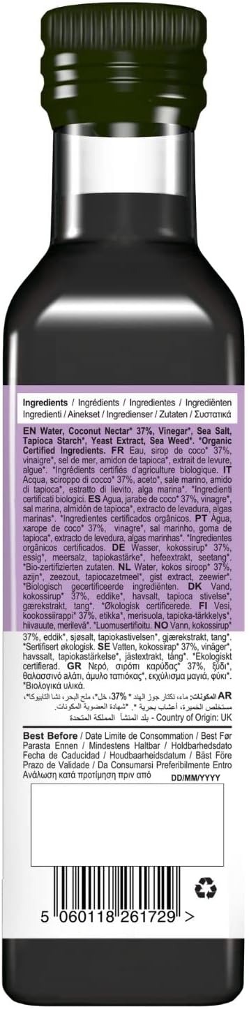 Water, Coconut Nectar*, Vinegar*, Sea Salt, Tapioca Starch* Yeast Extract, Sea Weed*