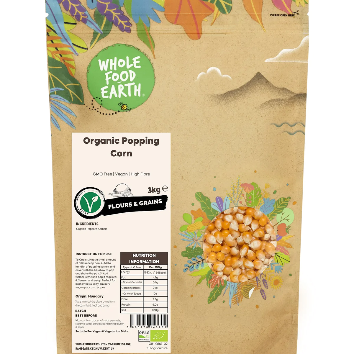 To Cook: 1. Heat a small amount of oil in a deep pan. 2. Add a handful of popping kernels and cover with the lid, allow to pop and shake the pan. 3. Add further kernels to pop if required. 4. Season and enjoy! Perfect for both sweet & salty-savoury vegan popcorn recipes.