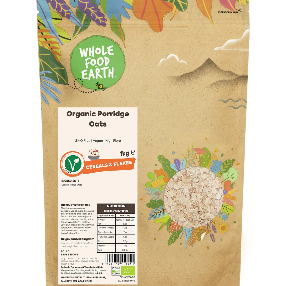 Our Organic Oats are high in potassium, calcium and protein, complemented by a high soluble fibre (proven to help lower cholesterol) and also insoluble fibre content (useful for healthy digestion). They are also rich in B vitamins, B1, B2, inositol and the hard to accrue (and exceptionally heart-healthy) Beta-Glucan, making them a sure-fire way to get your day off to a healthy start.