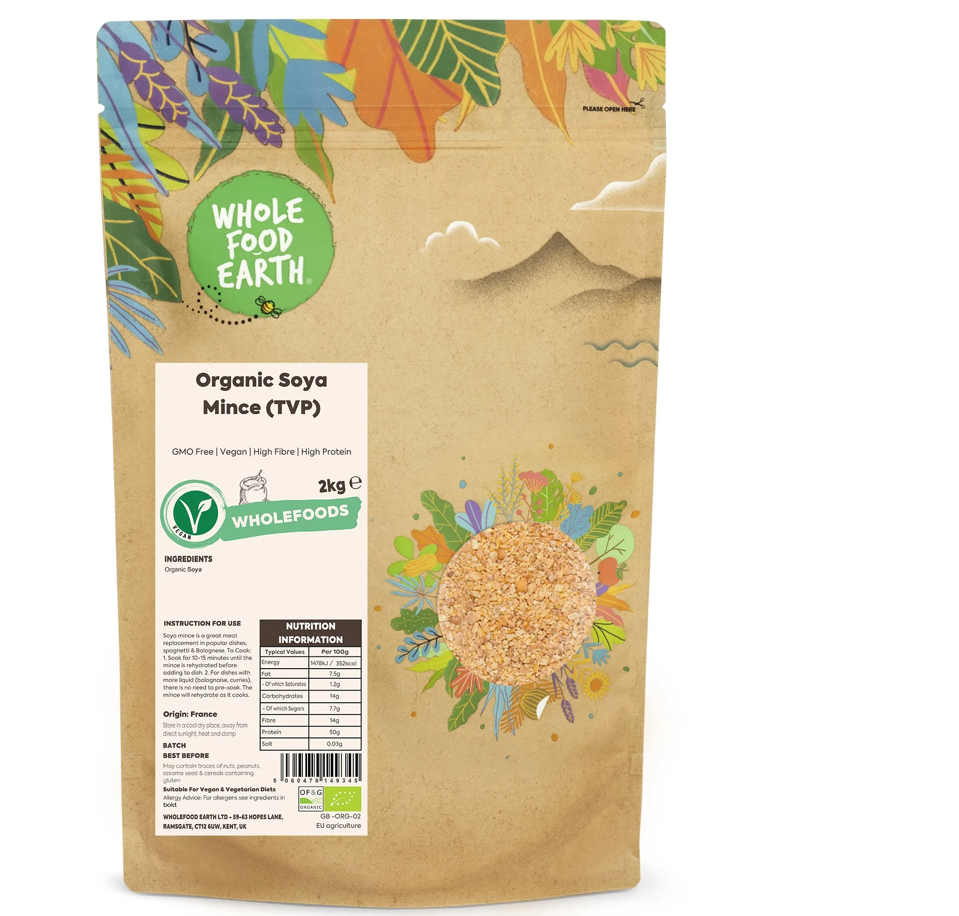 Organic Soya Mince (TVP) is textured vegetable protein, a soy-based meat substitute that aids vegetarians making meal planning.