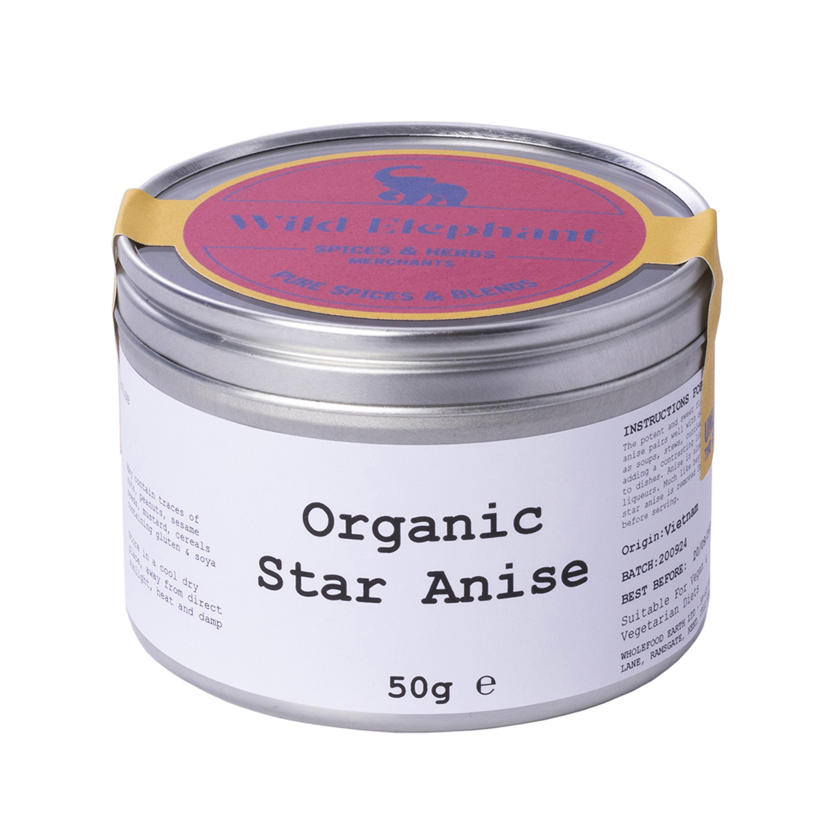 Wild Elephant Organic Star Anise has a mild and fragrant sweet, peppery flavour, which is similar to liquorice. Star anise is made from the fruit of the evergreen Illicium verum tree grown in Asia.