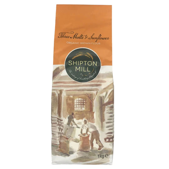 Shipton Mill Three Malts and Sunflower Organic Brown Flour is ideal for bread and bread makers. To produce the richness and depth of this flour, whole grains of wheat, rye and barley are steeped in water before being carefully malted, allowing time for the flavours to mature. When ready the grains are lightly roasted to enhance their flavour and golden colour. It is gently blended with sunflower, linseed and pumpkin seeds. The three malts make a delicious, well-balanced brown flour. Perfect for use as general-purpose bread flour, and works well in bread makers.