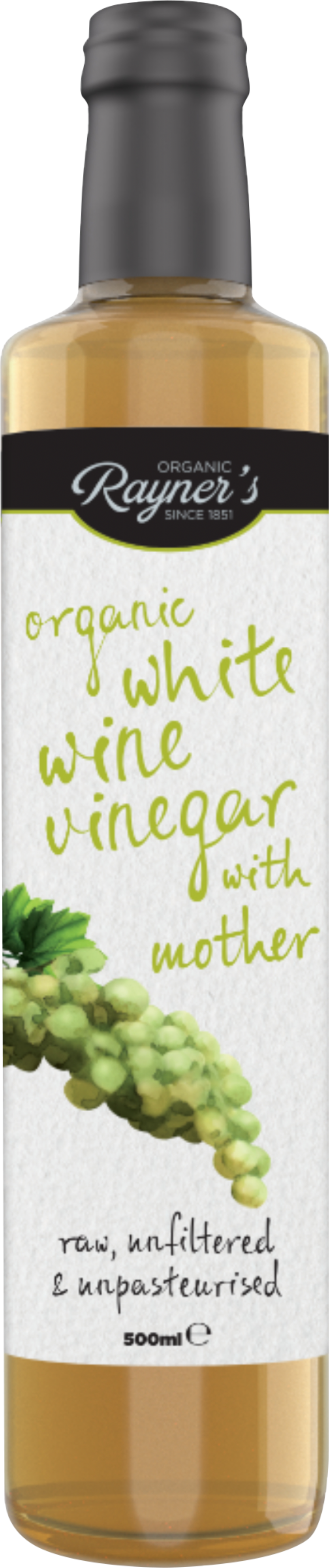 The UK's first white wine vinegar with 'The Mother', Rayner's Organic White Wine Vinegar is raw, unfiltered and unpasteurised. It contains 'The Mother', all the nutrient rich stuff that other vinegars filter away. Shake up to release these live bacteria and natural enzymes. Rayner's Organic White Wine Wine Vinegar is ideal when making dressings, sauces and marinades. Often used as tonic, just add a tablespoonful to a glass of water with honey to start the day with a refreshing drink.