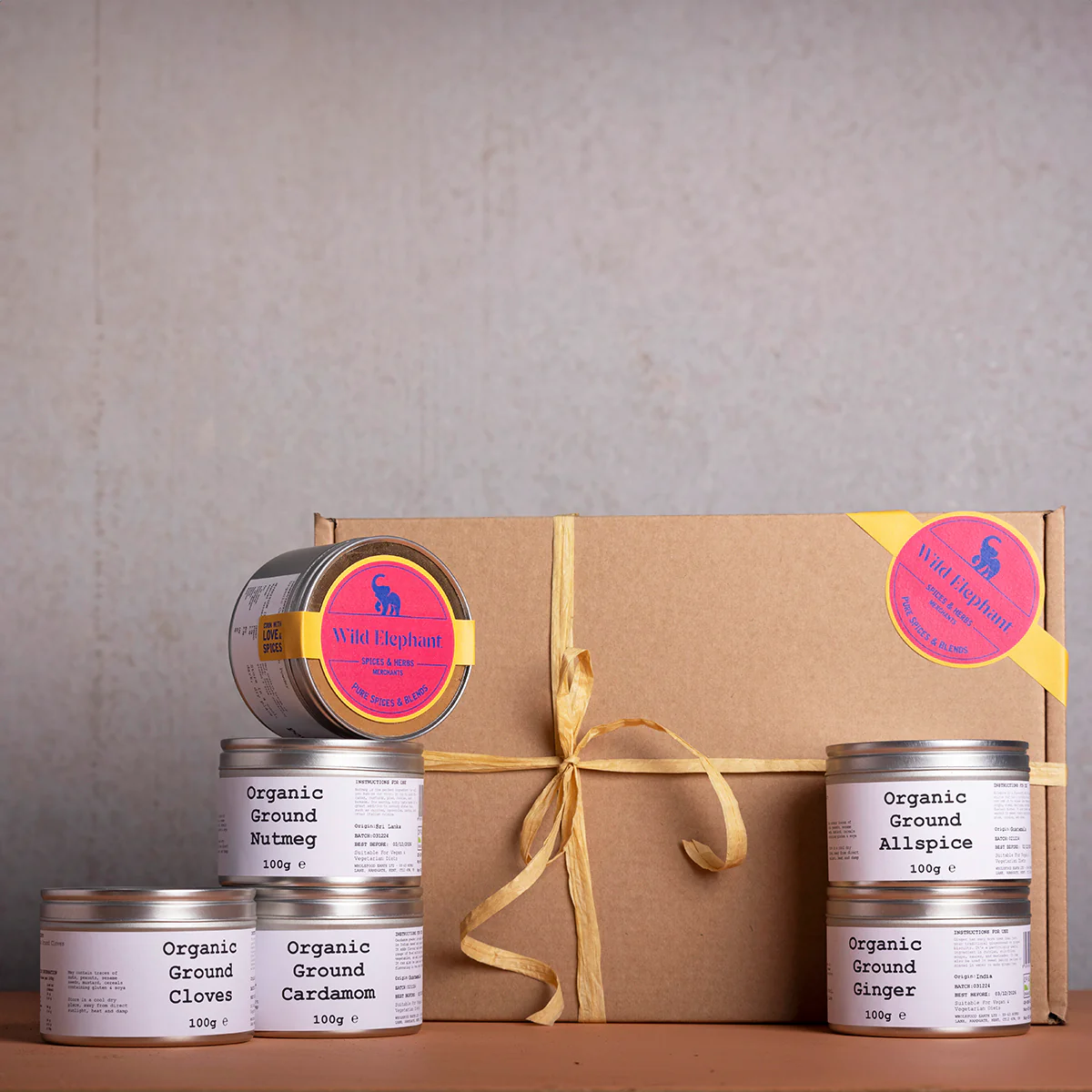 Discover the warmth of the season with our Wild Elephant Organic Winter Spice Box. This thoughtfully curated collection brings together premium organic spices that define winter cooking—from warming cinnamon and clove to aromatic nutmeg and ginger. Each spice is carefully sourced and selected for its quality and flavour intensity, making it ideal for festive baking, mulled wines, and seasonal dishes. Perfect for those who appreciate authentic, natural ingredients without compromise. Elevate your winter kitchen with spices that deliver genuine depth and character to every recipe.